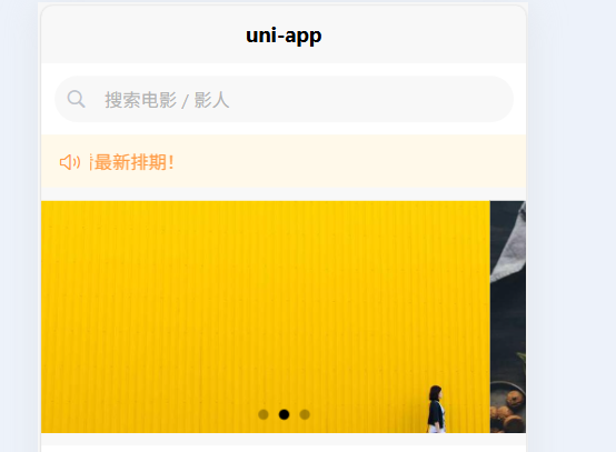 - 位于顶部,自动轮播展示热门电影海报。(推荐使用swiper)
